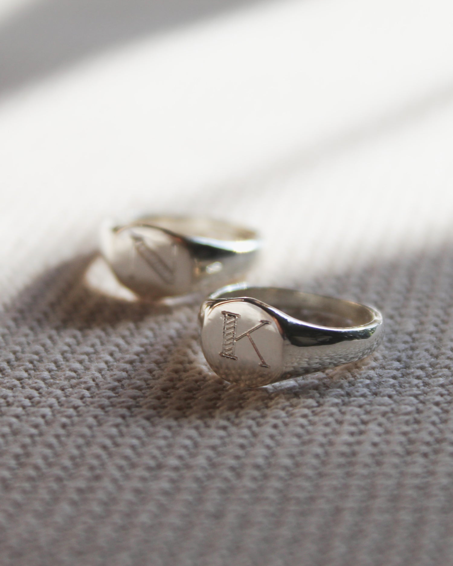 A handcrafted sterling silver pinky ring, personalized whit your chosen initial.